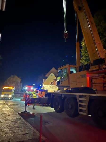 Der Bagger wurde abschließend durch eine Fachfirma abgeschleppt, und unsere Kräfte konnten im Gerätehaus die Einsatzbereitschaft wieder herstellen.