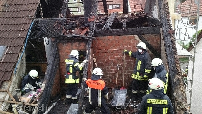 Erneute Brandentwicklung beim Anwesen des Dachstuhlbrandes vom 02.09.16.
