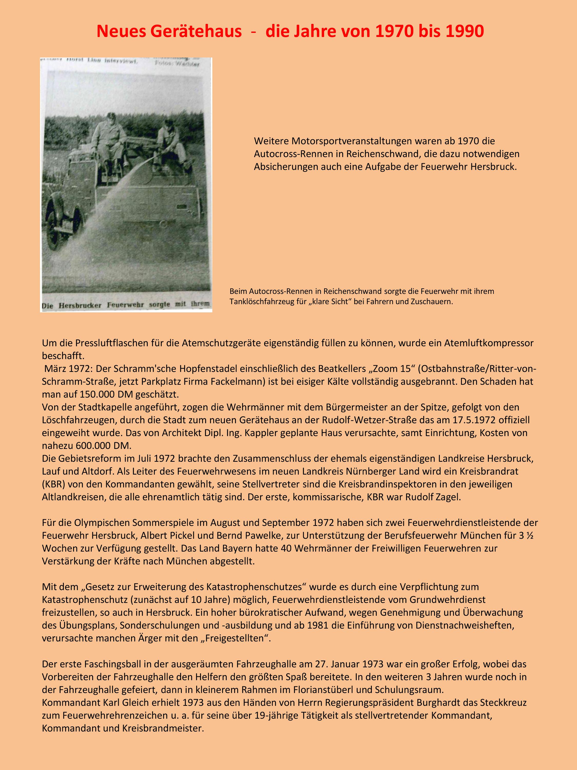 Neues Gerätehaus - die Jahre von 1970 bis 1990