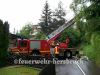 Durch den Trupp auf der zwischenzeitlich in Stellung gebrachten Drehleiter mussten aus einem Baum mehrere Äste mit der Kettensäge entfernt werden, bevor der Dachstuhl am westlichen Eck kontrolliert werden konnten. Einige beschädigte Dachziegel mussten danach noch entfernt werden, bevor letzte Glutnester abgelöscht werden konnte, Nach einer weiteren Außenkontrolle mit der Wärmebildkamera konnte der leicht beschädigte Dachstuhl mit einer Plane abgedeckt und provisorisch gegen Regen gesichert werden.