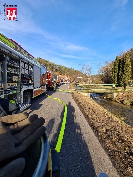 Am Samstagnachmittag wurde unser Löschzug zur überörtlichen Hilfe des Landkreises Amberg- Sulzbach zu einem Wohnhausbrand mit vermisster Person alarmiert. Vor Ort wurden die Kräfte des amberg-sulzbacher Landkreises durch unsere Drehleiter mittels Anleiterbereitschaft und einem Atemschutztrupp sowie mehreren Trupps in Bereitschaft unterstützt. In einem freistehenden Einfamilienhaus im Ortskern von Hirschbach kam es zu einem ausgedehnten Zimmerbrand über zwei Geschosse. Eine vermisste Person bestätigte sich vor Ort zunächst nicht. Nach kurzer Unterstützung konnten unsere Kräfte wieder einrücken und die Einsatzbereitschaft in Hersbruck wieder herstellen.