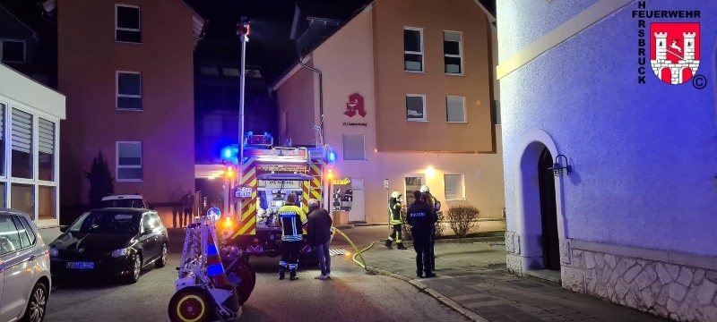 Am frühen Mittwochmorgen, gegen 01:30 Uhr, wurde unser Löschzug zu einem Brand an Gebäude in die Nähe des Hersbrucker „Cityparks“ in die Innenstadt alarmiert. Ein aufmerksamer Heimbewohner bemerkte Feuerschein eines Brandes von Unrat auf einer Terrasse in einem Hinterhof, der schnell durch zwei Trupps unter schwerem Atemschutz abgelöscht werden konnte. Anschließend wurden umliegende Gebäude noch auf Rauchgase kontrolliert, belüftet und freigemessen, bevor die Bewohner wieder zurückkehren konnten. Die Brandursache wird durch die Polizeiinspektion Hersbruck ermittelt, der mitalarmierte Rettungsdienst musste lediglich die Arbeiten der Feuerwehr absichern, aber nicht eingreifen.