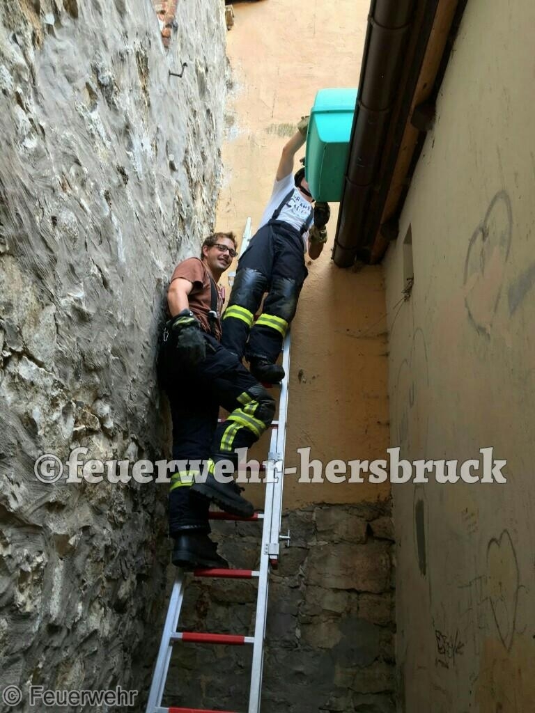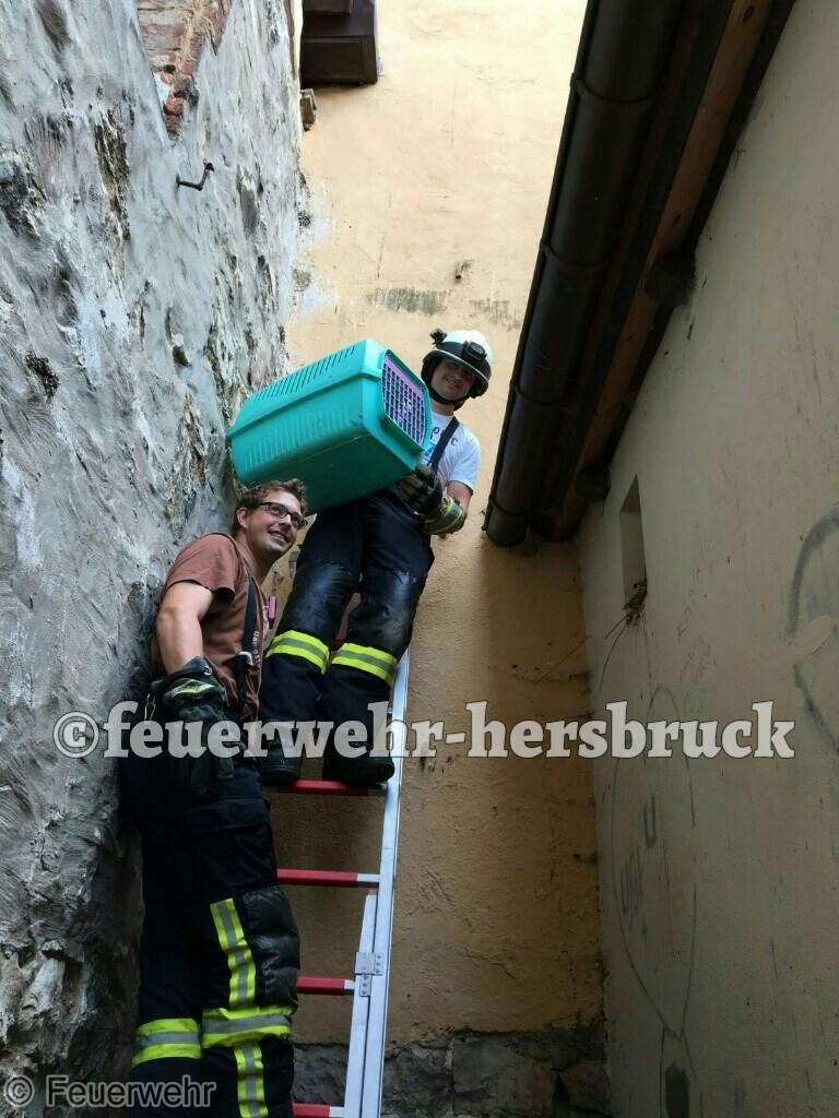 Morgen wird das Nest nochmals vom Gerätewart der Feuerwehr Hersbruck überprüft, ob das Tier wieder von seiner Familie aufgenommen wurde.