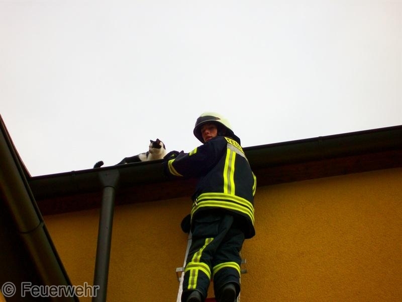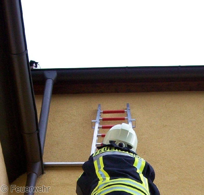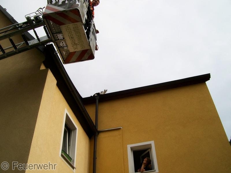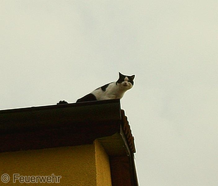 Die kletterte bei ihrer morgentlichen Tour durch ein Dachfenster auf das dazu gehörige Dach und fand den Weg nicht mehr selbstständig zurück. Sie machte auf ihr Dilemmer mit lauten "miauen" aufmerksam.