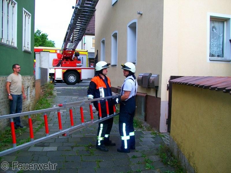 Daraufhin wurde das LF zur Einsatzstelle beordert und eine zweiteilige Steckleiter in Stellung gebracht.