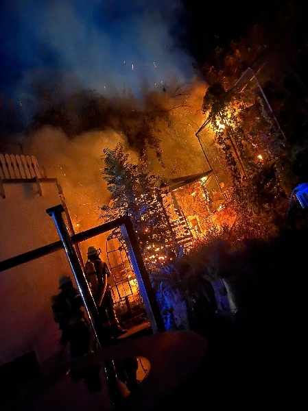 Dort standen mehrere Holzanbauten auf einem Grundstück in Flammen.