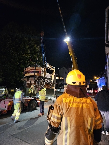 Der Bagger wurde abschließend durch eine Fachfirma abgeschleppt, und unsere Kräfte konnten im Gerätehaus die Einsatzbereitschaft wieder herstellen.
