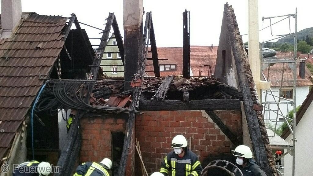Erneute Brandentwicklung beim Anwesen des Dachstuhlbrandes vom 02.09.16.