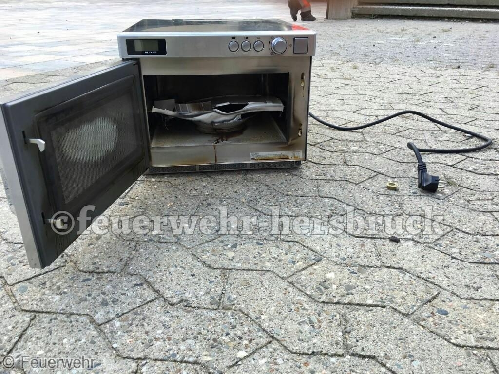 Brand Mikrowellengerät in Küchenbereich.