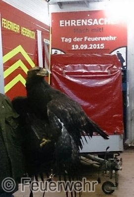 Hersbruck - Einen Tierrettungseinsatz der ganz besonderen Art hatte die Feuerwehr Hersbruck am vergangenen Sonntag abzuleisten. Mit dem Hinweis großer Greifvogel auf der Straße gesichtet alarmierte die Leistelle Nürnberg sowohl die Polizei als auch die Feuerwehr. Nach einem Kurztrip mit Blaulicht in den Nürnberger Tiergarten und anschließender ruhiger Heimreise konnte der Steinadler dem glücklichen Besitzer im Gerätehaus wieder übergeben werden.Einen eher untypischen Einsatz mussten einige Kameraden der Freiwilligen Feuerwehr Hersbruck am ersten Advent ableisten.