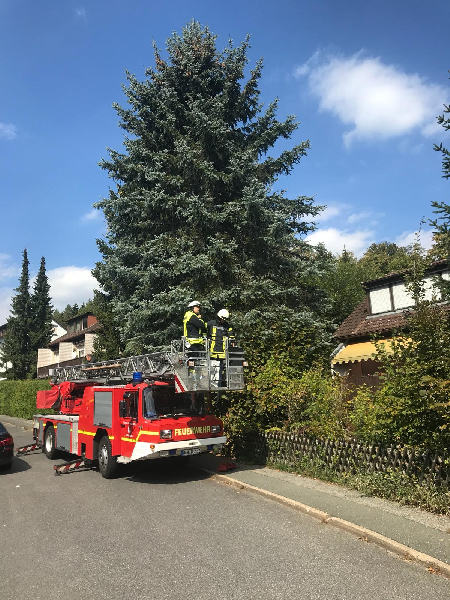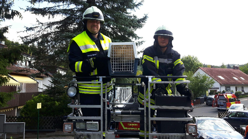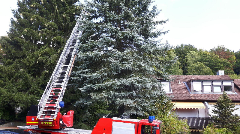 Unterstützung der Feuerwehr Enzendorf mittels Drehleiter bei der Rettung einer Katze von Baum.