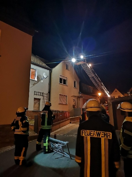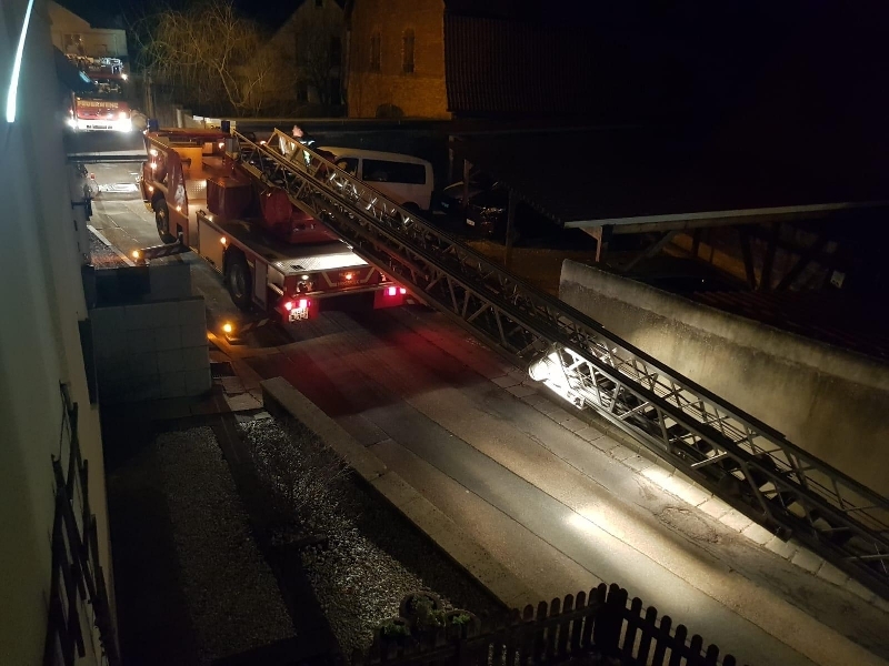 Person über Drehleiter aus dem 1. Stock auf Erdgleiche verbracht und Rettungsdienste übergeben.