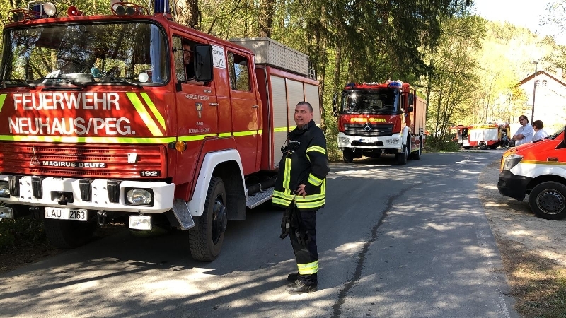 Löschwasserversorgung mittels Löschfahrzeuge.
